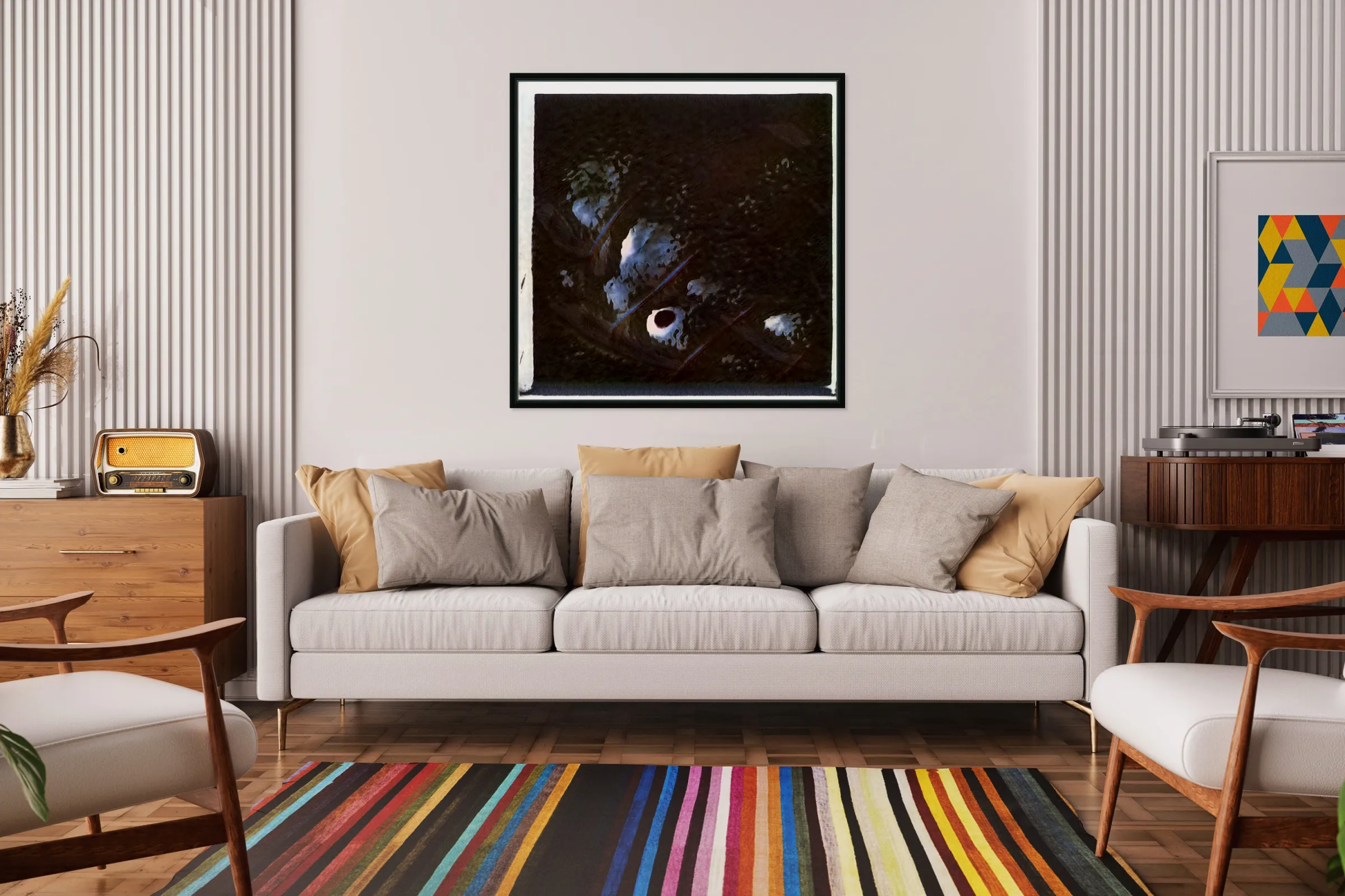 Printed to the edge & Ready to hang. With a floating frame on the back and hanging wire