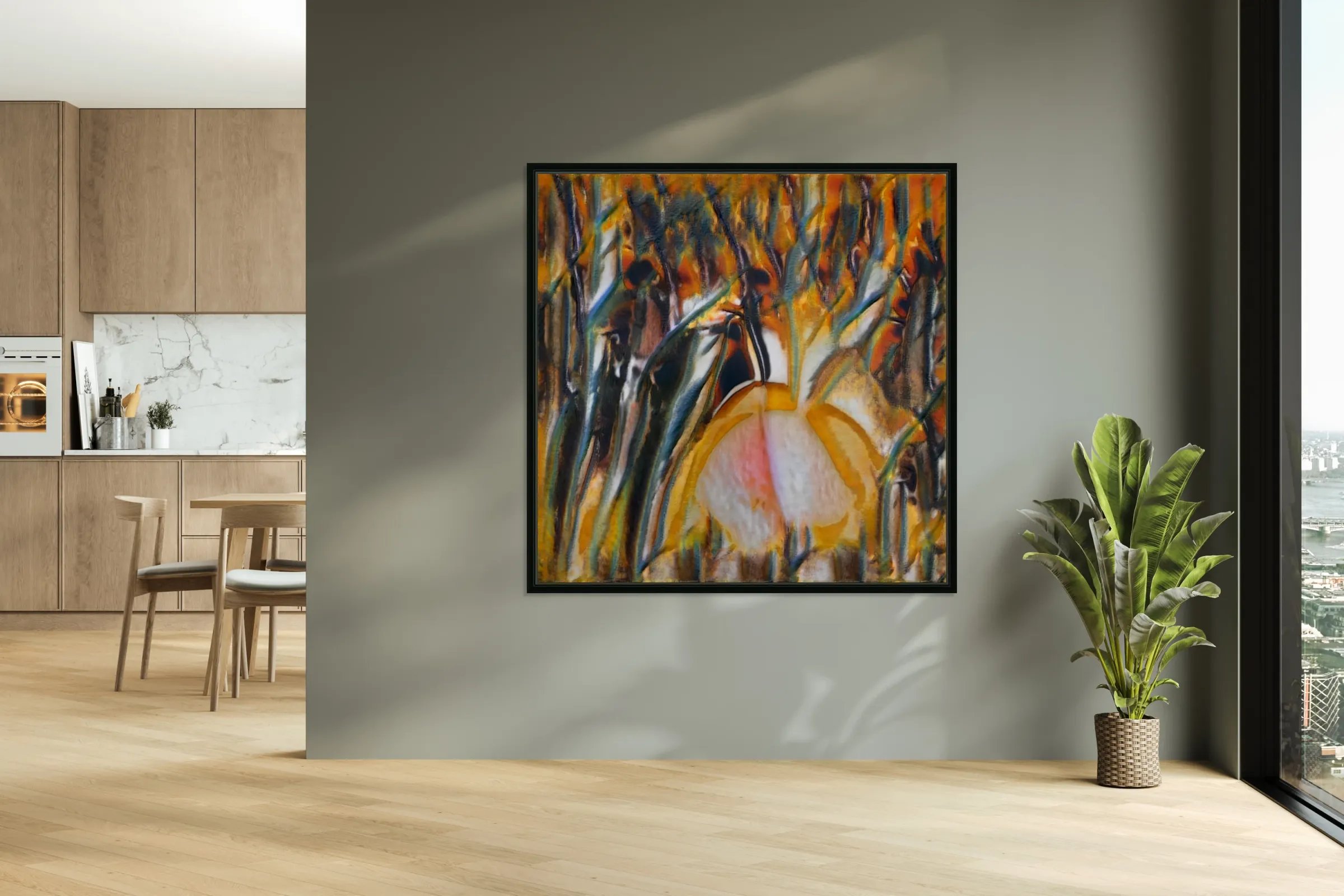 Printed to the edge & Ready to hang. With a floating frame on the back and hanging wire