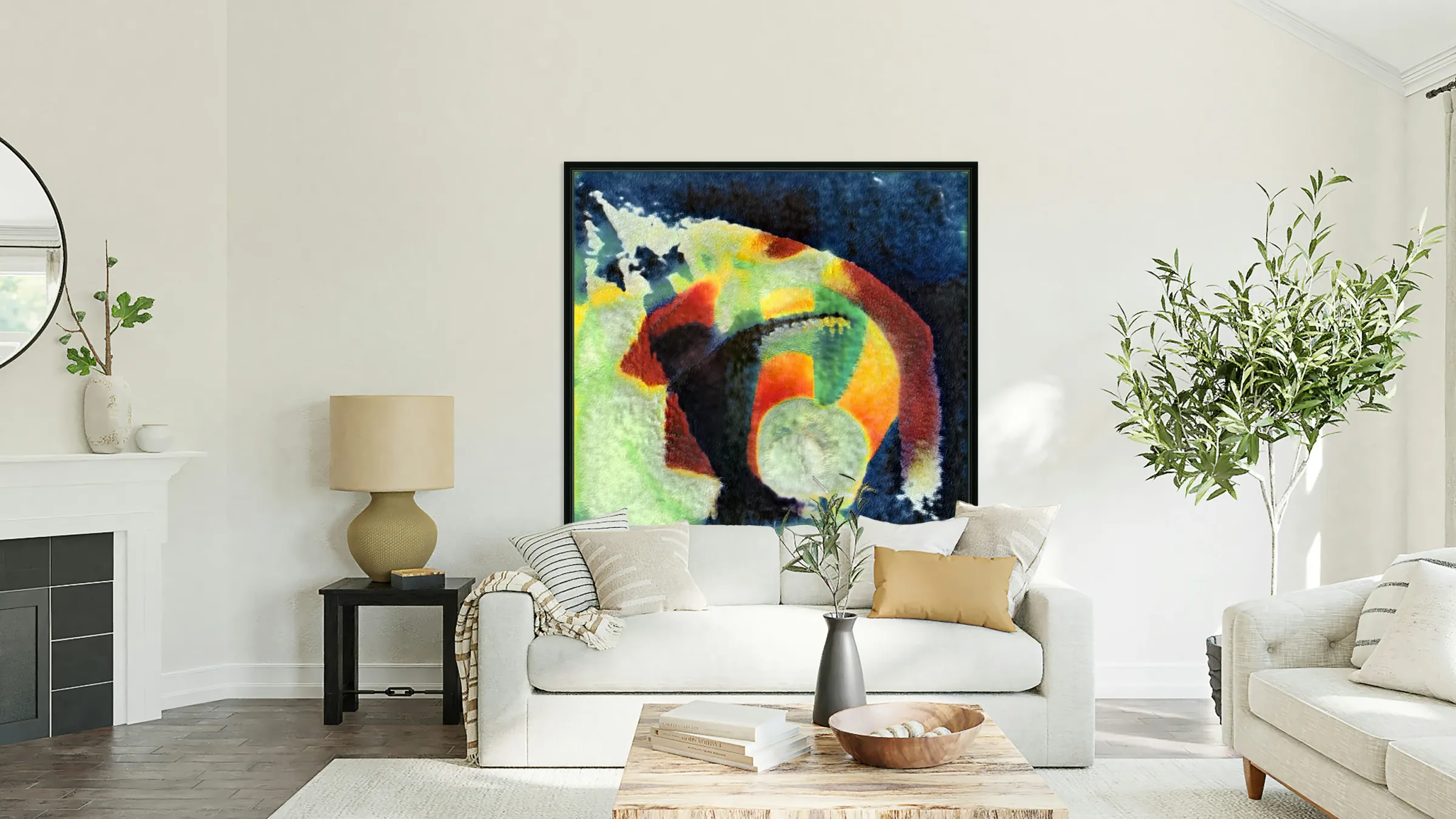 Printed to the edge & Ready to hang. With a floating frame on the back and hanging wire