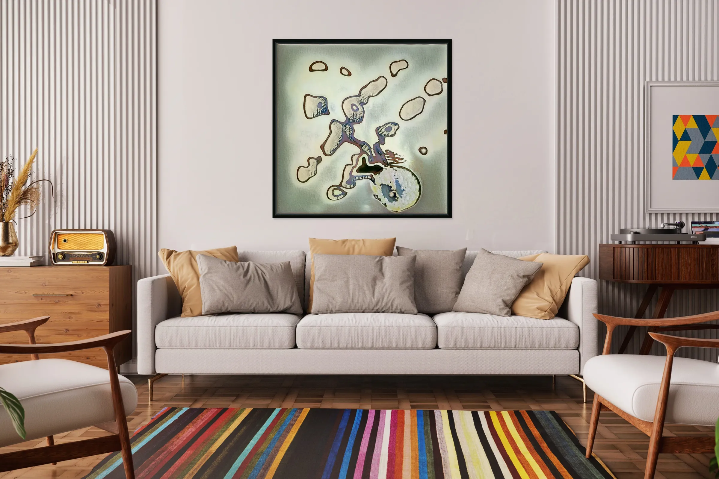 Printed to the edge & Ready to hang. With a floating frame on the back and hanging wire
