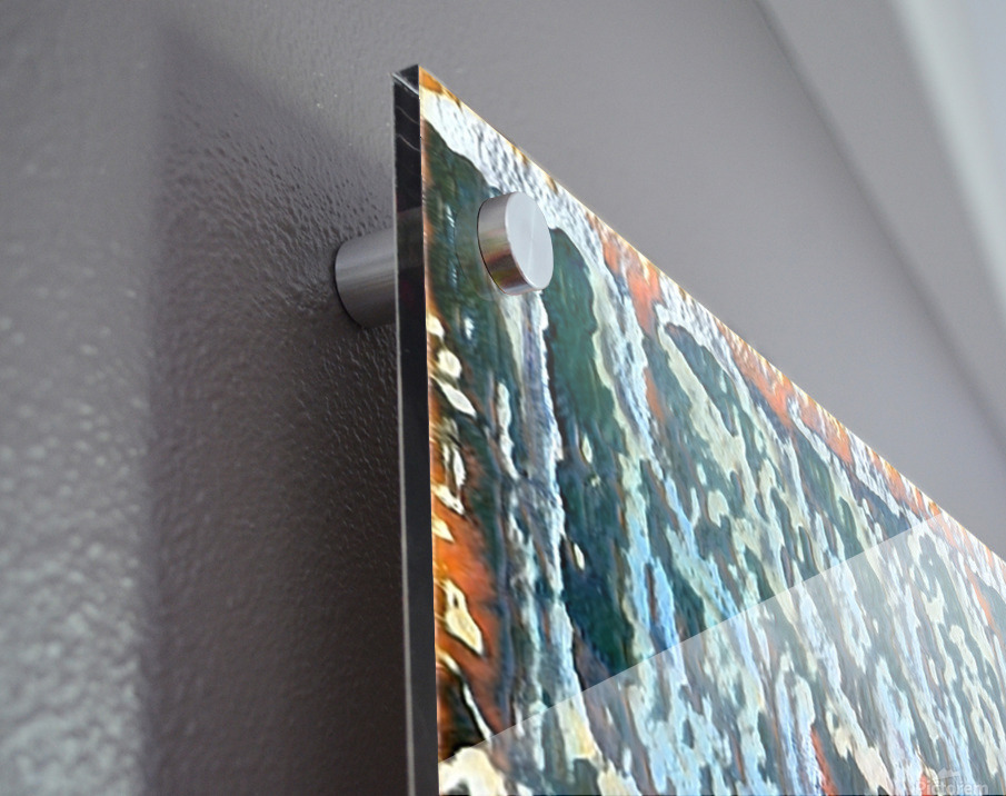 Impression sur acrylique avec entretoises ( cylindres métalliques )